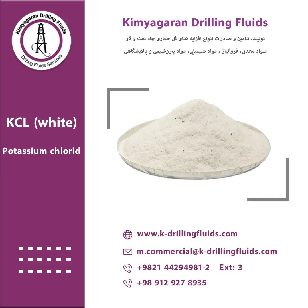 - – تنظيم كثافة السائل: يُستخدم هذا المركب عادة كإضافة لتنظيم كثافة سائل الحفر. من خلال تغيير تركيز كلوريد البوتاسيوم الأبيض في سائل الحفر، يمكن تعديل كثافة السائل، مما يسمح بتحكم أفضل في الضغط داخل بئر النفط.